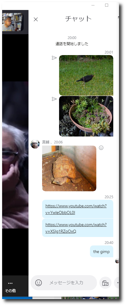 いちおう練習のための余興として、1枚写真を用意してスクリーンショットように「チャット」の枠にアップロードすることにしている。