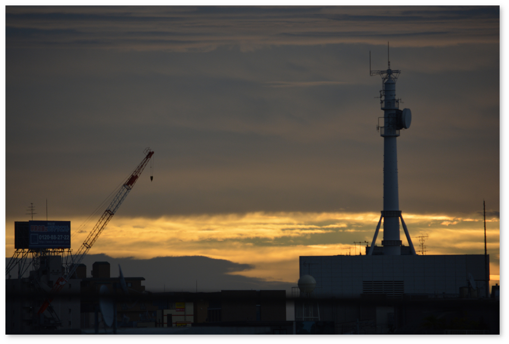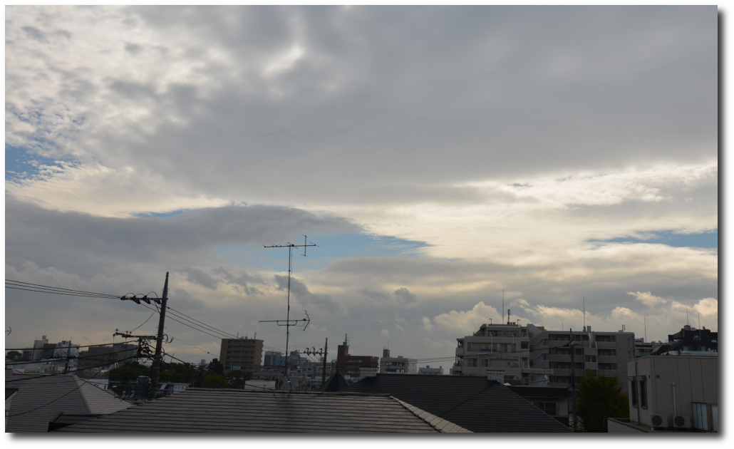 今日の遠くの空には積乱雲が小さく見えるので、少し複雑な図柄になっている。