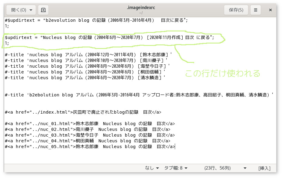 たくさんあるので、アルバムの目次ファイルを作るので、1階層ディレクトリが増える。