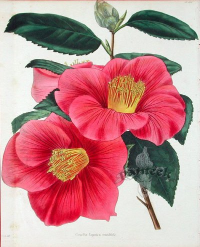 ヨーロッパの植物画ですが、ちょっとはっとしたツバキです。