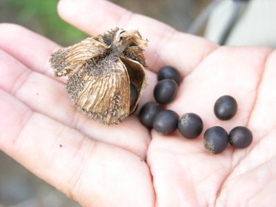 ススキが生え、山芍薬が種を作っている・・・・七段花が結構大きくて、なでしこ。うっそうとした木友禅みたい。