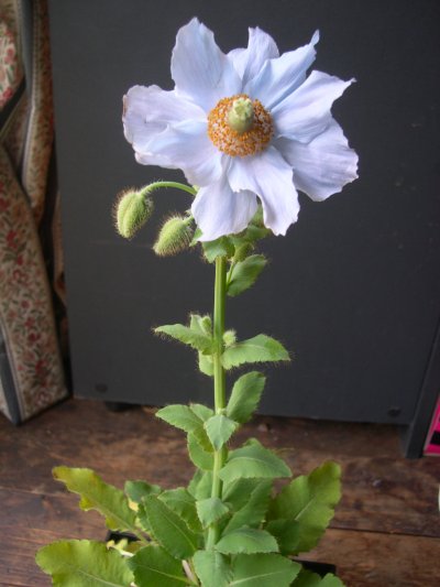 青いケシ、ご近所のご夫婦が見にいらっしゃいました。(笑)