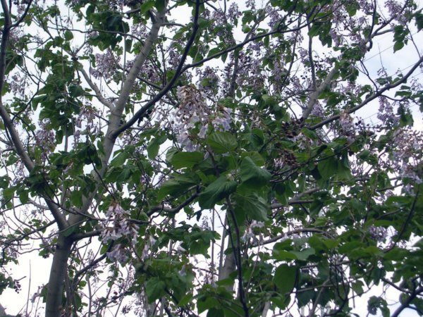 キリの花、夕方だったのでまた天気の良い日にと思っています。が、ここに来るまでにイイギリがあって、友人とそこの主の会話が傑作でした。「昔は女の子が生まれると、庭に植えたものだった」「そうですね」「・・・・」
