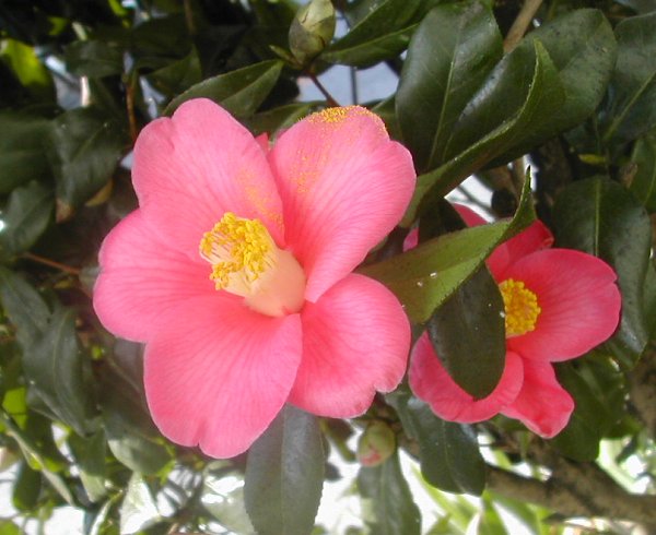ツバキは花・葉・冬空との色合いの調和が好きです。