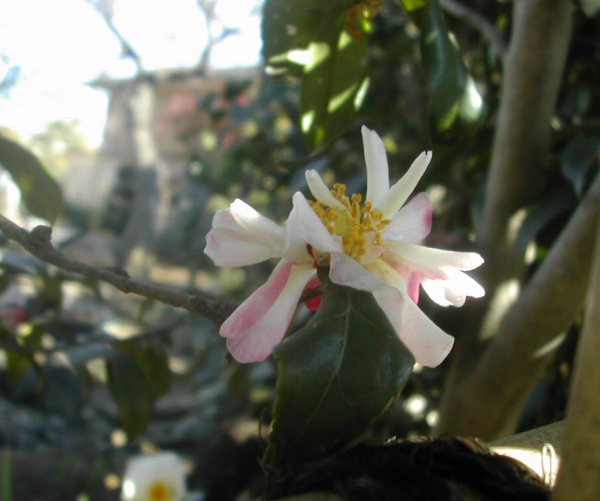 お茶の葉みたいな葉と花、ツバキでもこんなのがあるのだぁ。