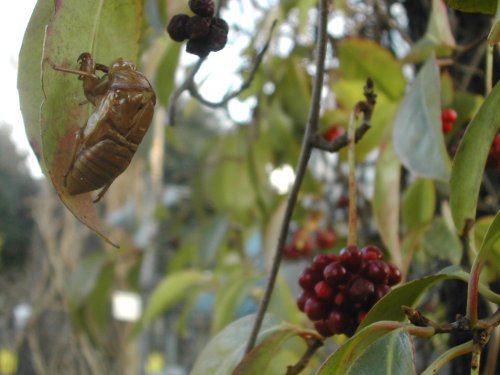 せみの抜け殻がまだあった。さねかづらです。(すごく気に入ってる実)