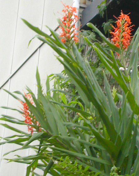 ショウガ科。インド原産。白い花が咲くご近所の「ハナシュクシャ」は先日の台風で倒れかけましたが、どうやら蕾がありました。「ハナシュクシャ」は最近は花屋で売っていますね。