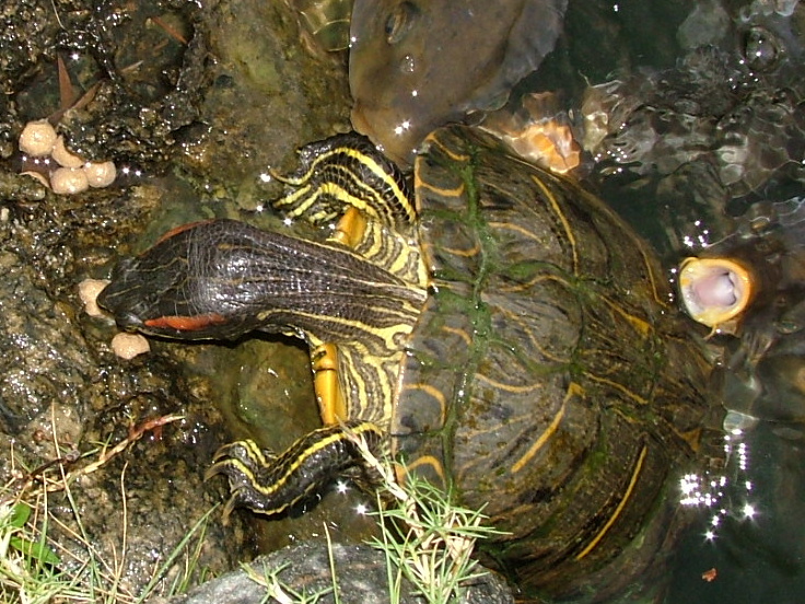 12月の今頃でも、元気に活動しています。天気のいい日は甲羅干しなんかやっています。